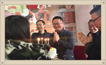 主題討論結束后,參會成員在農家小院給生產總監姜華明先生、生技部副經理兼車間主任李云先生共慶生日。大家唱起生日之歌,送上祝福!在兩位壽星的許愿下,在同事們歡聲笑語中共享簡單、快樂的生日宴!